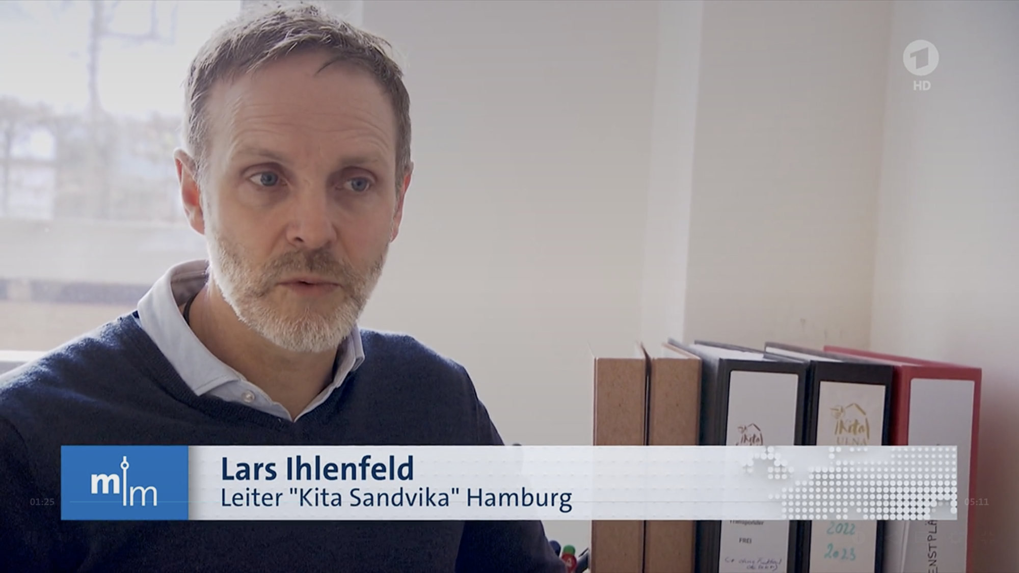 Zur aktuellen Fachkräftelage und den damit verbundenen Folgen für Kitas aber auch die Kinder und Familien war die ULNA-Kita Sandvika von unseren Mitgliedern im Mittagsmagazin zu sehen. Dabei erzählte die Leitung Lars Ihlenfeld von den Schwierigkeiten, die der Fachkräftemangel im Kita-Alltag mit sich bringt.